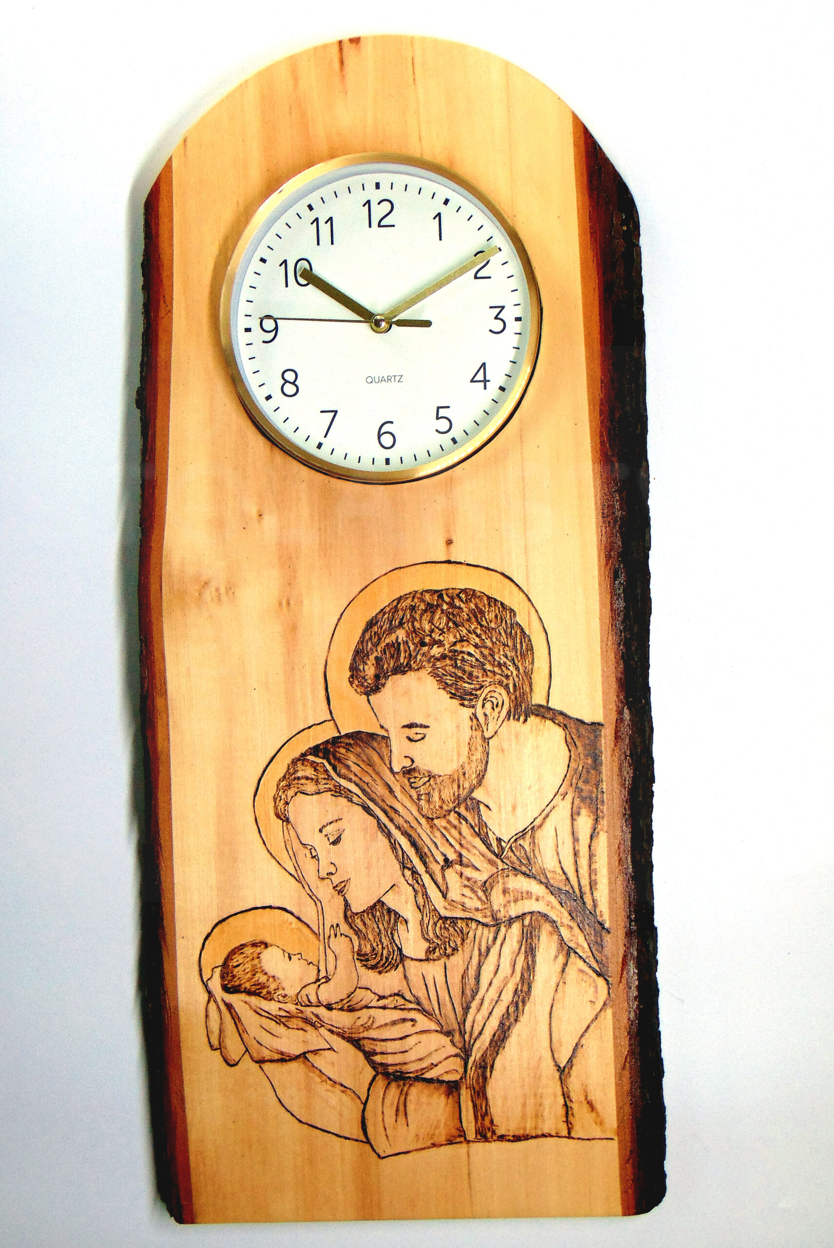 Vyrobené z masívneho lipového dreva. Povrchová úprava lak. Hodinový strojček je poháňaný tužkovou batériou. Hodiny sú ručne vypaľované na jedinečnom kúsku masívu, a preto je každý produkt pri objednávke výnimočný.