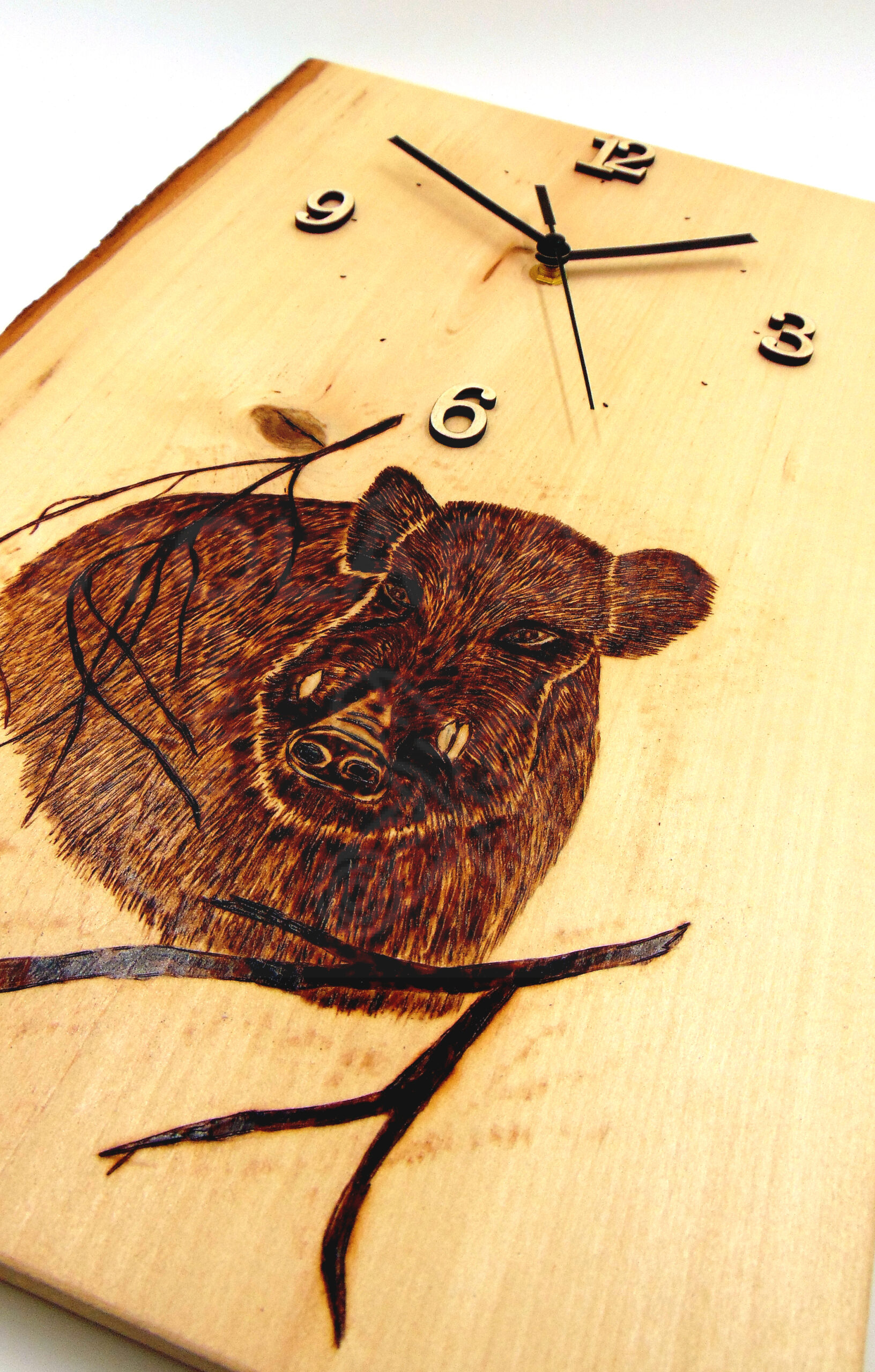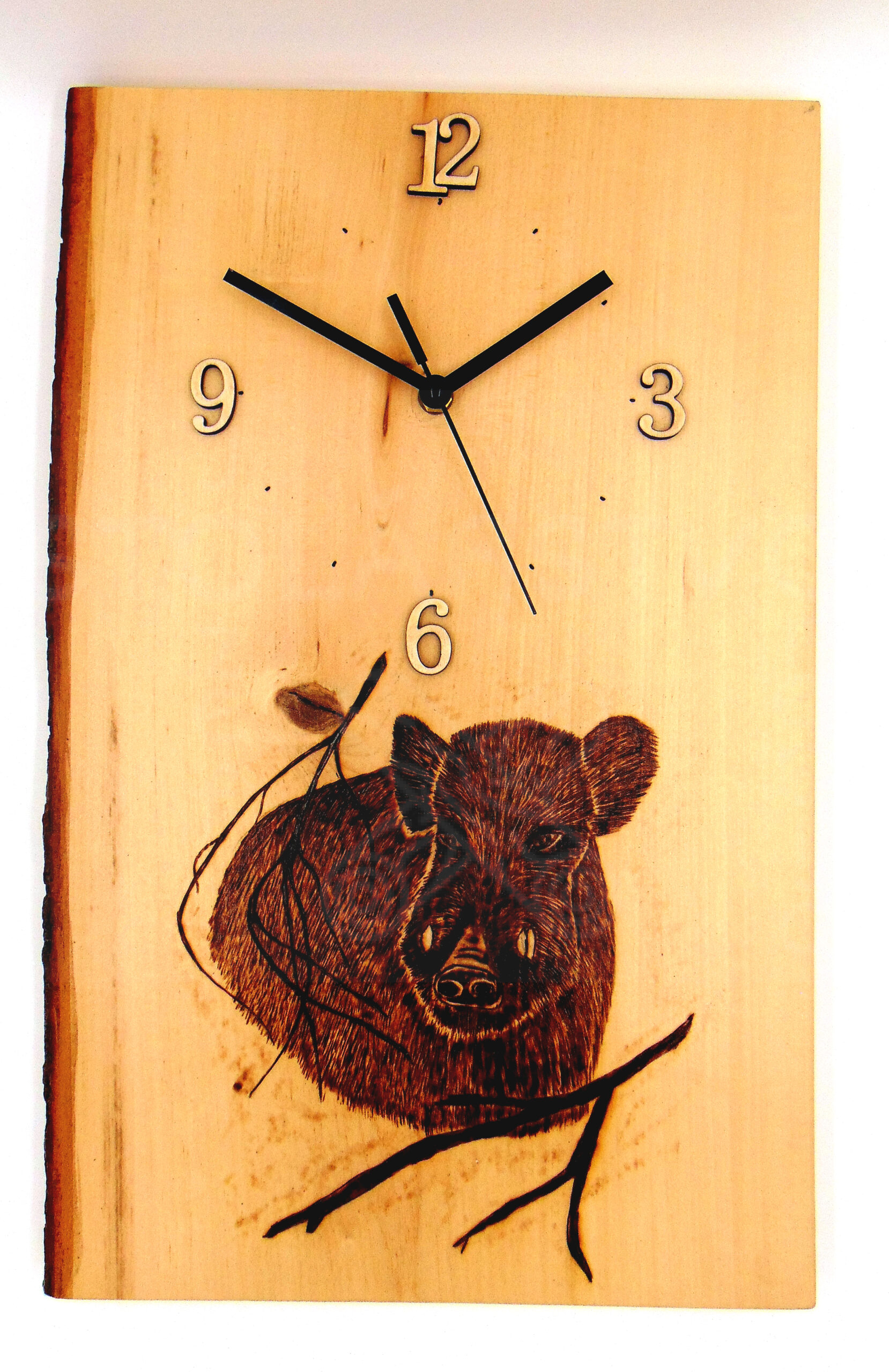 Vyrobené z masívneho lipového dreva. Povrchová úprava lak. Hodinový strojček je poháňaný tužkovou batériou. Hodiny sú ručne vypaľované na jedinečnom kúsku masívu, a preto je každý produkt pri objednávke výnimočný.