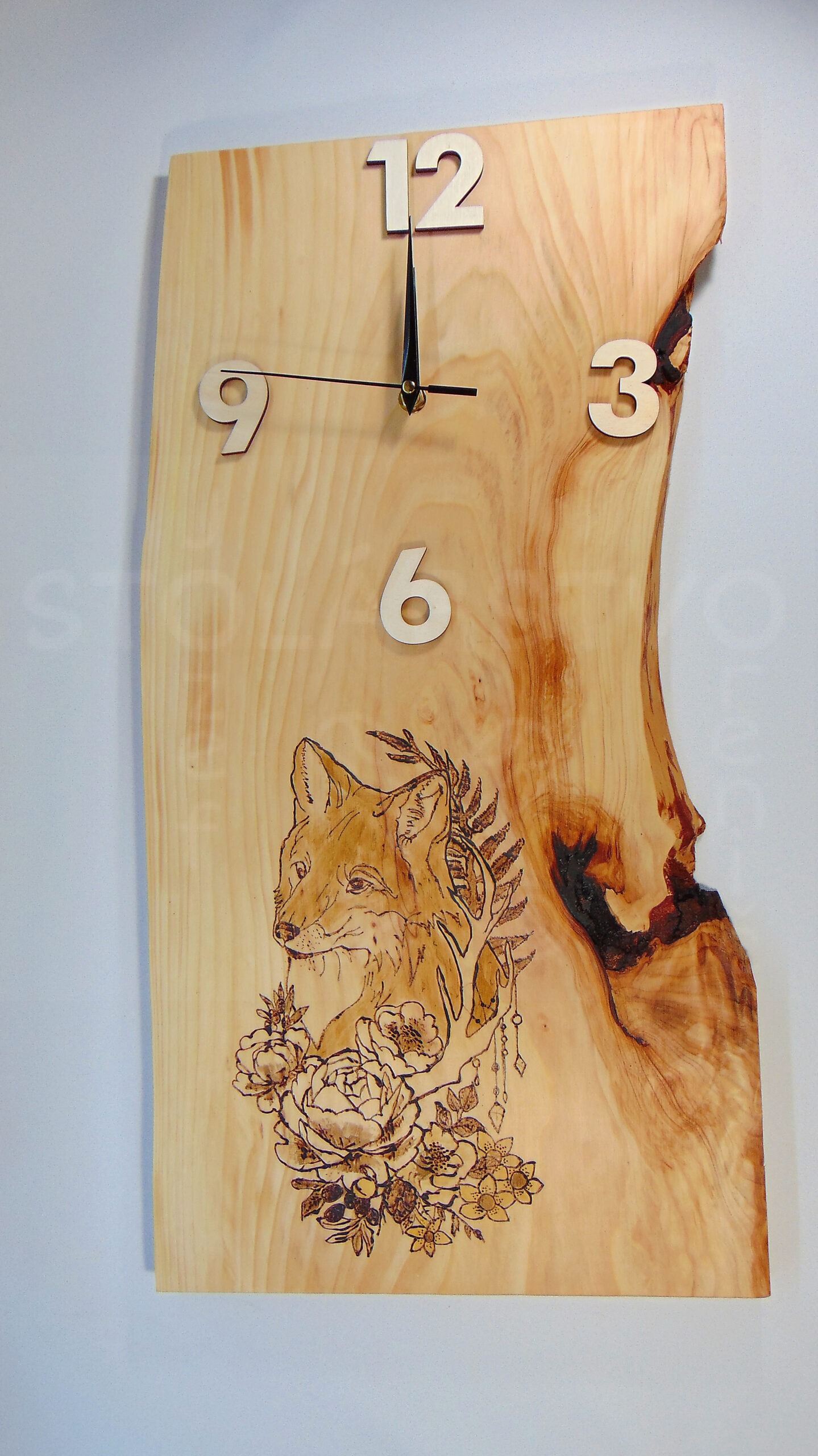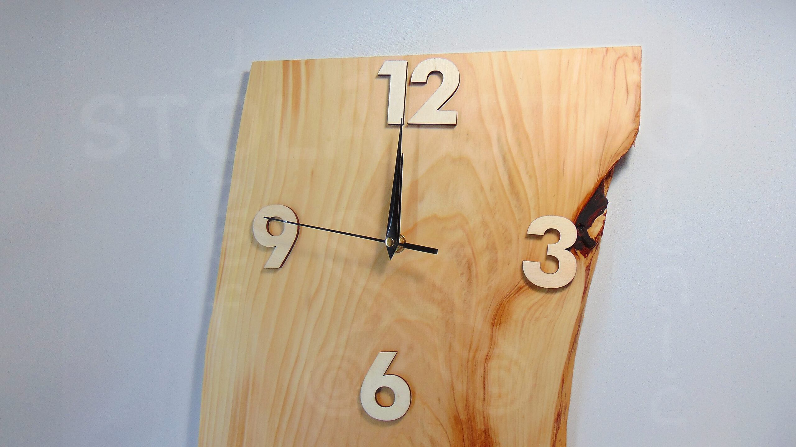 Hodiny sú vyrobené z lipového dreva s ručne vypáleným vzorom na jedinečnom kúsku masívu, a preto je každý produkt jedinečný. Povrch je ošetrený lakom. Hodinový strojček je poháňaný tužkovou batériou (nie je súčasťou výrobku).