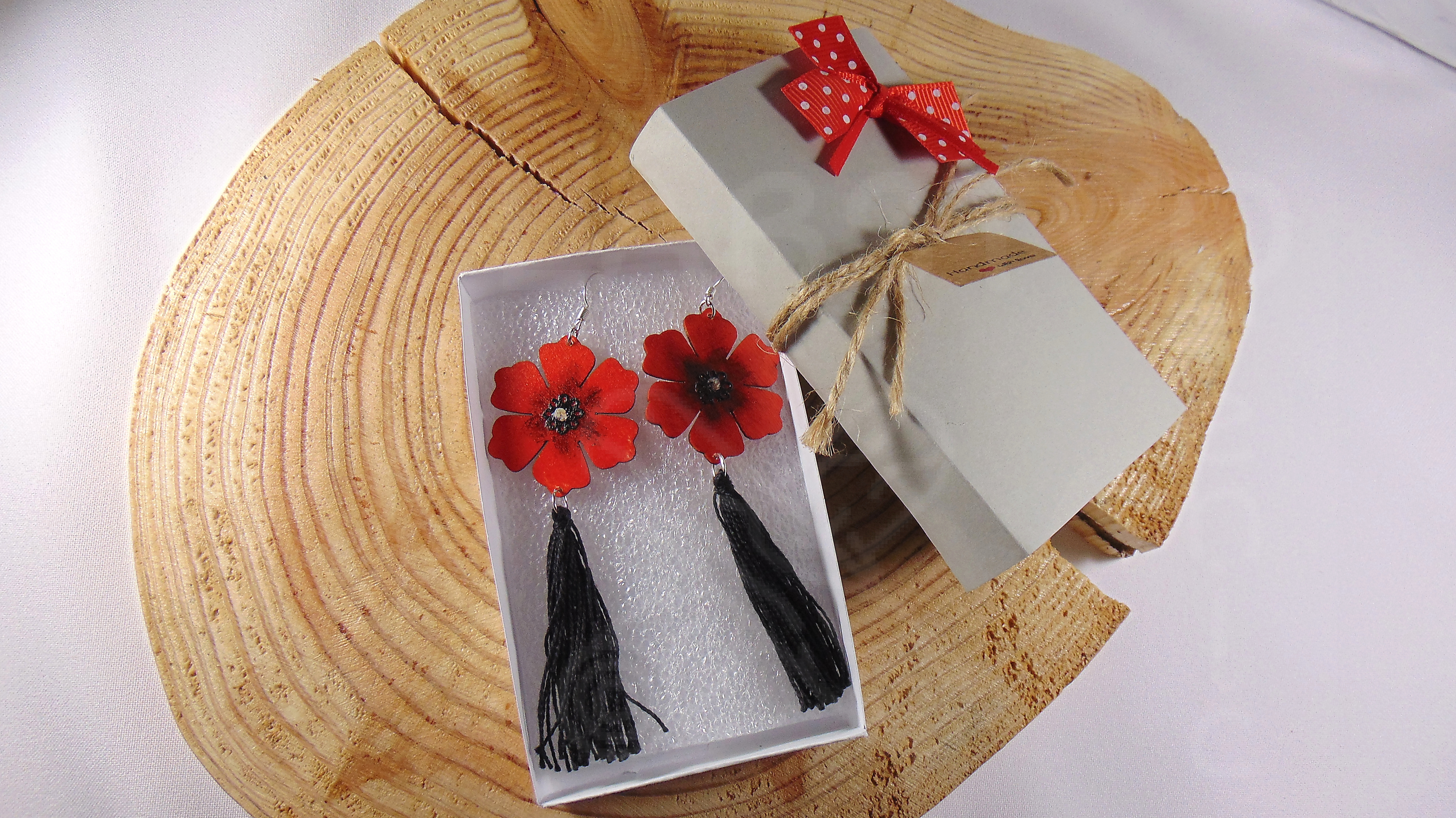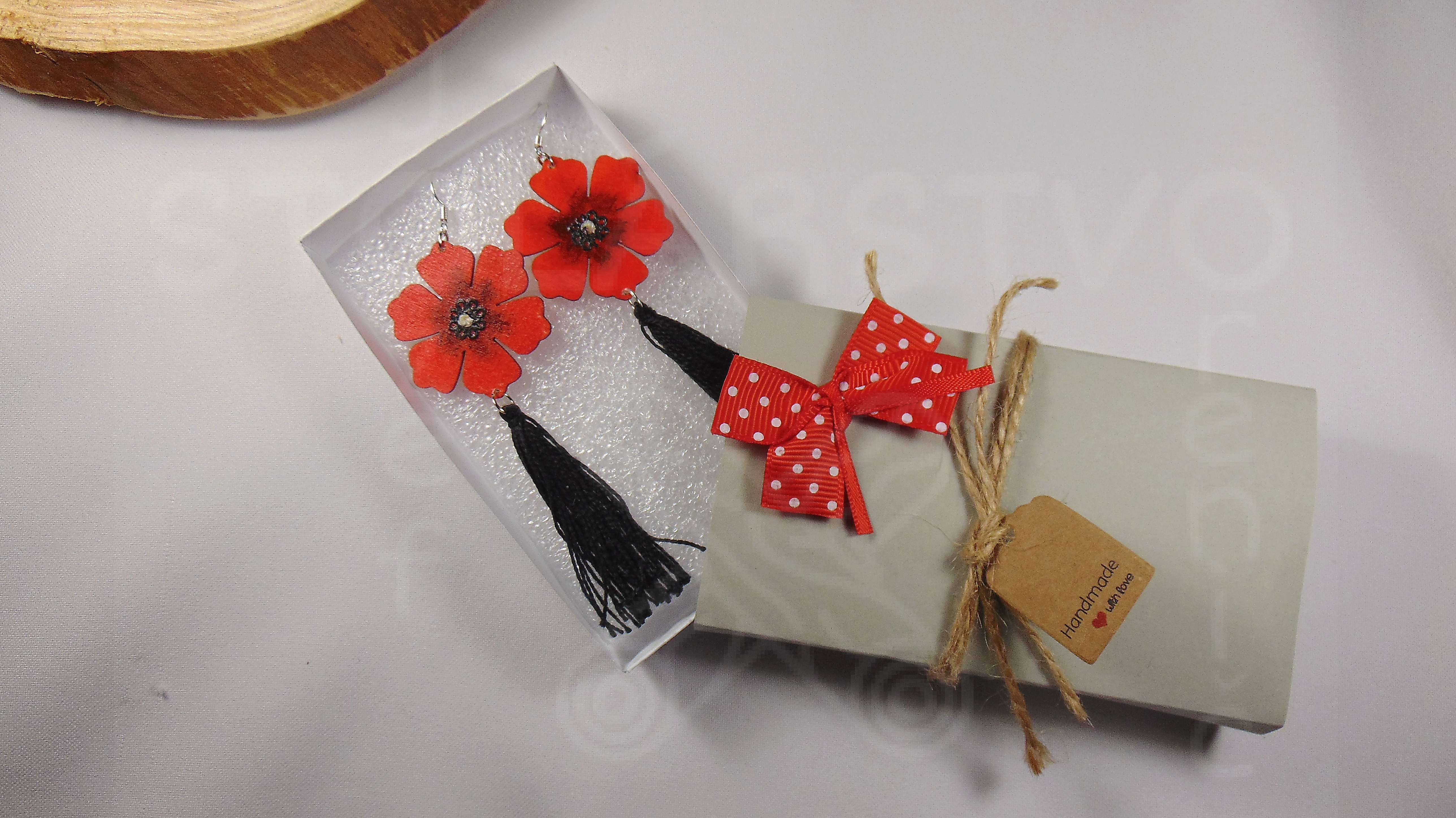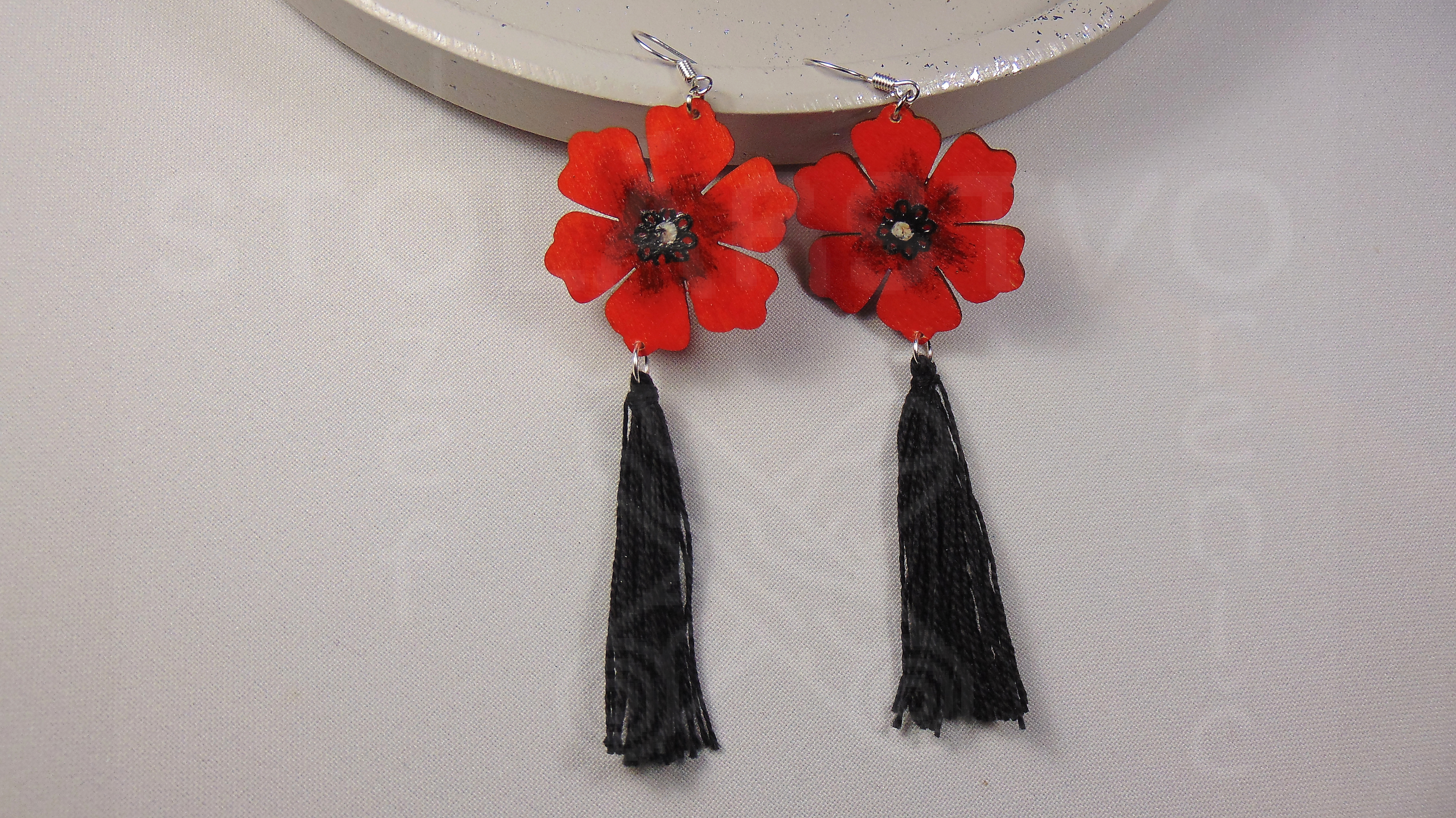Náušnice Divé maky sú vyrobené z tenučkej 0,1 cm preglejky. Vďaka tomu ich váhu na ušiach takmer nepocítite. Maľované akrylovými farbami a povrch je natretý akrylatovým lakom. Záves tvorí strieborný bižutérny kov a celková dĺžka náušníc je 10 cm a šírka 3,5 cm.