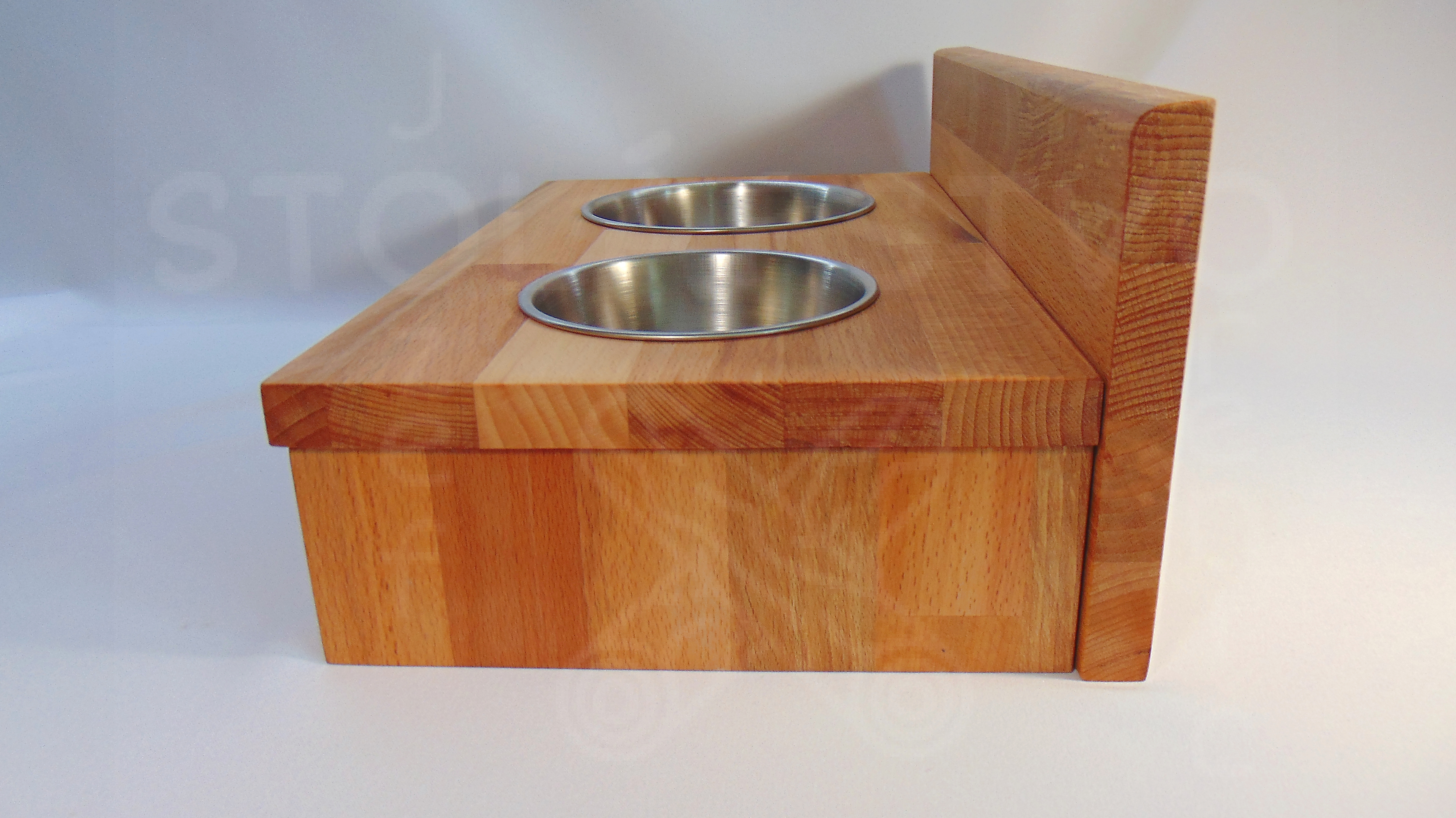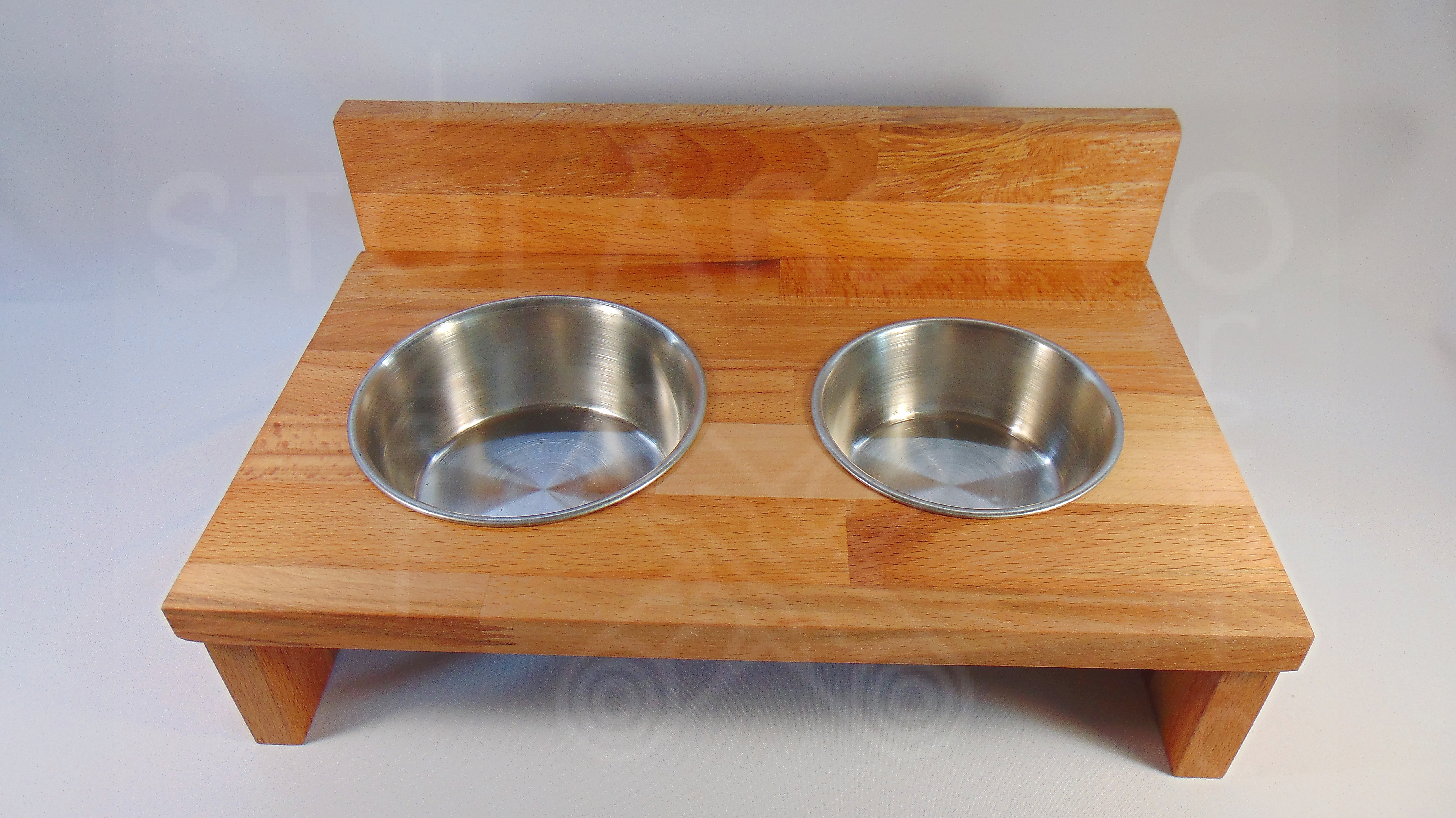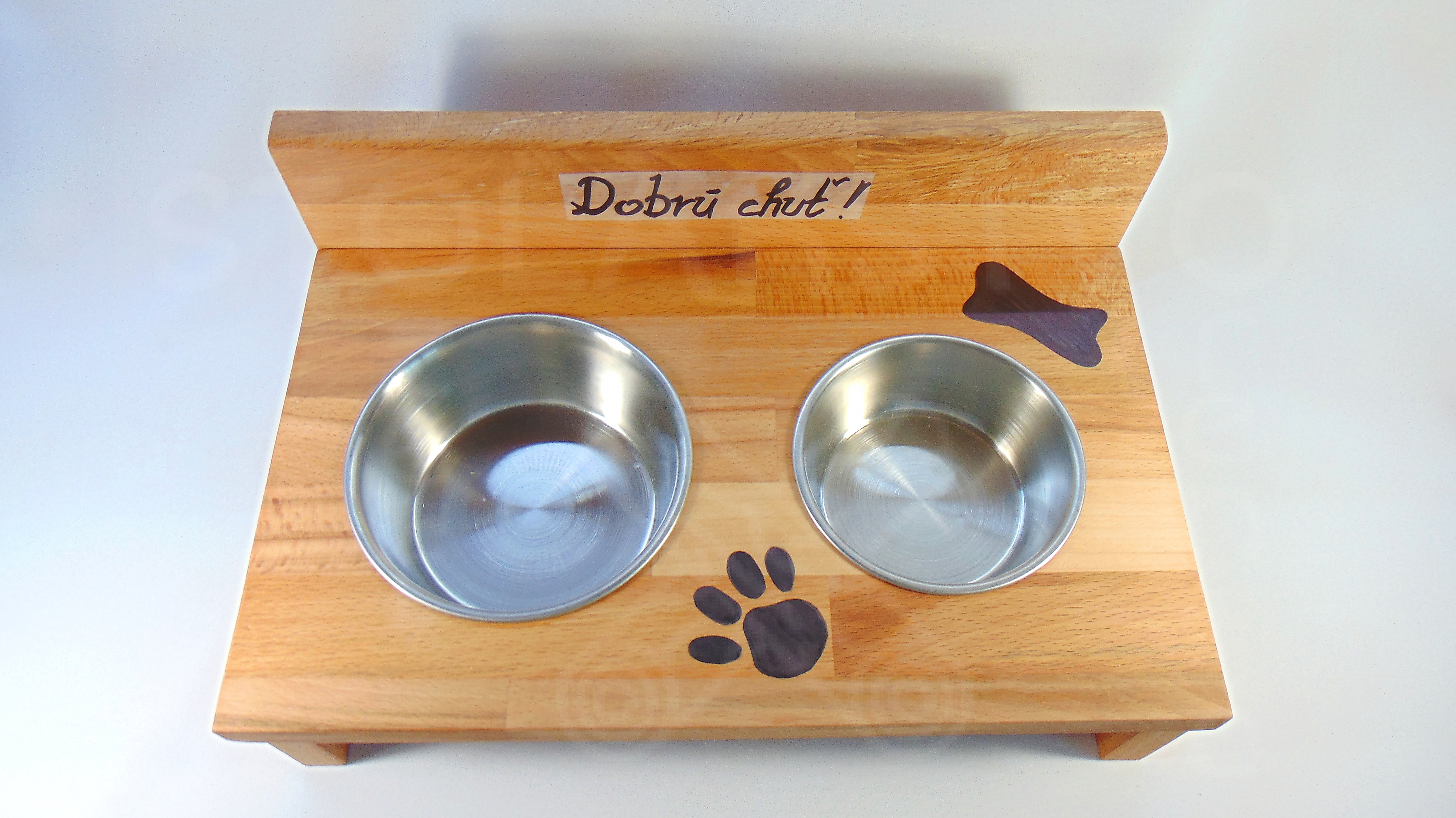 Stojan pre psíka z masívneho bukového dreva. Stojan je ošetrený ľanovým olejom a eko lakom. Obsahuje dve kovové misky, ktoré sú pri sebe, a tak má váš miláčik krmivo a aj vodu pokope. V ponuke sú dve varianty a to v jednoduchom prírodnom prevedení, alebo s vypáleným vzorom a v dvoch veľkostiach.V prípade záujmu o doplnenie mena svojho miláčika pri objednávke dopíšte meno do poznámky.